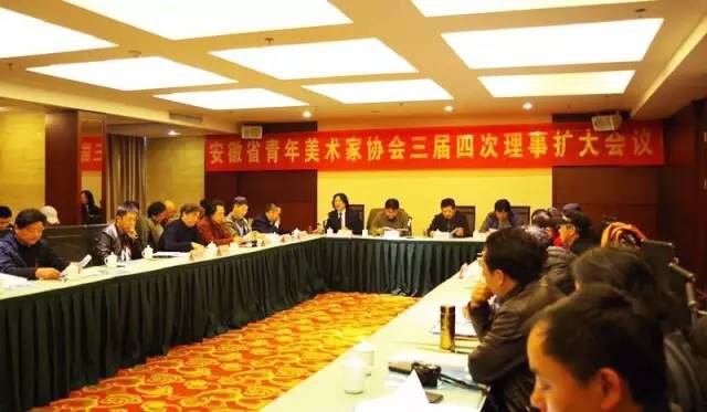 2017年三月三日下午,安徽省青年美术家协会三届四次理事扩大会议在蚌埠安徽禾泉小镇隆重召开。中国美协水彩艺委会副秘书长、安徽省美术家协会常务副主席丁寺钟,安徽省美术家协会主席团成员、秘书长谢宗君,安徽省美术家协会副主席、安徽省青年美术家协会主席陈飞翔,蚌埠市美术家协会副主席,蚌埠市油画协会主席赵敏等出席会议。安徽省青年美术家协会副主席左建华,杨洪伟,李浩宇,陈忠村,葛涛,洪成华,耿广春,董方,管冬梅,刘立冬以及副秘书长任辉等出席会议。